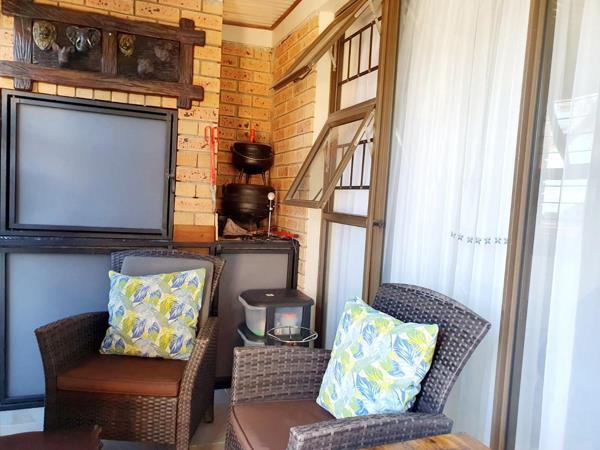 Adding to its appeal, this home includes an enclosed built-in braai area that opens directly onto a sunny front deck, creating a welcoming space for year-round entertaining. The garden is small and easy to maintain, with an enclosed section at the back of the home as well as a water tank for added convenience. The main bedroom features an en-suite bathroom fitted with a bath, while the second bedroom is serviced by a separate bathroom.