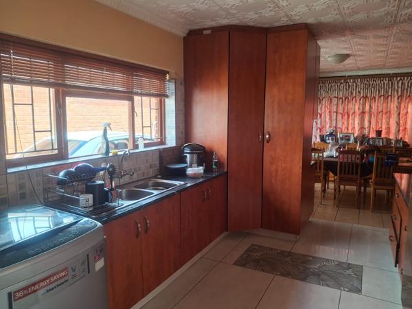 When entering the front door you step into a spacious, open-plan dining- and living area that flows into a well-appointed spacious kitchen with plenty of cupboard space for all your culinary needs. The three generously sized bedrooms with built-in cupboards provide ample storage space. Two modern bathrooms offer privacy and relaxation for every member of the household. Beyond the main living spaces, there are a double garage and two additional carports, offering abundant parking.
