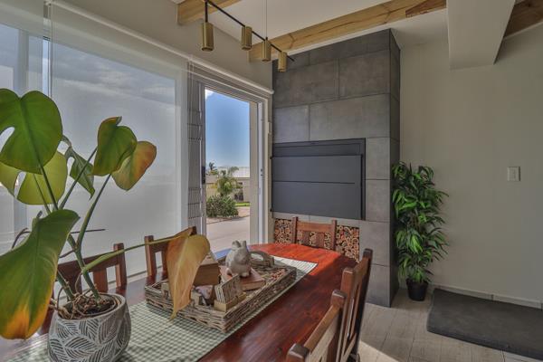 This property boasts a seamless open plan living room with build in braai, that flows effortlessly into the modern kitchen, with double volume ceilings and special lights, with scullery, offering the perfect space for entertaining guests or family.