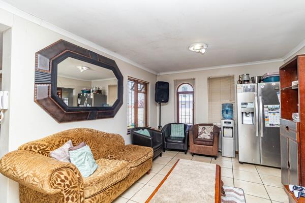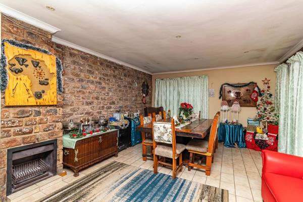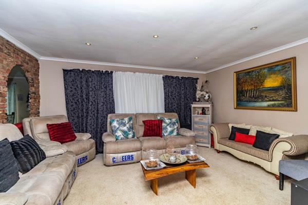 When entering this home an open plan living area greets you. The home has a separate family room adjacent to the kitchen. The dining room opens up with sliding doors onto an open patio with outdoor braai.