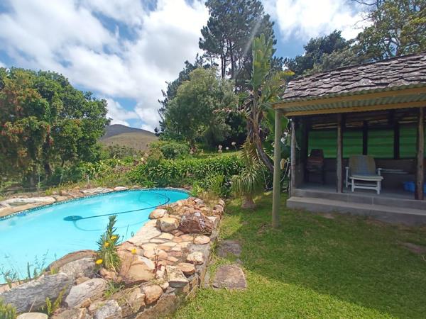 The property includes a spacious four-bedroom main house, four fully furnished cottages for family or guests, a large shed, and complete perimeter fencing. A beautiful swimming pool provides a refreshing spot to relax, while a campsite with its own ablution facilities offers additional options for enjoying the outdoors. The farm is sustained by registered river and mountain springs, ensuring a natural, reliable water supply.