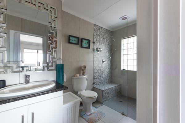 There are three Bedrooms with Built-in-cupboards and tiled floors. The main-en-suite Bathroom is modern with a very big shower. The second Bathroom has a Basin,Toilet and Shower.