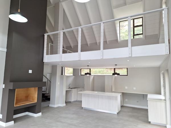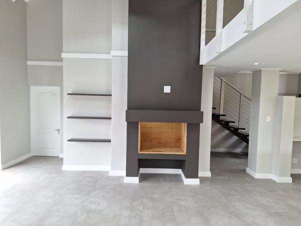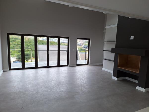 *Open plan living area with built in braai/fireplace that walks out onto a balcony through stacking