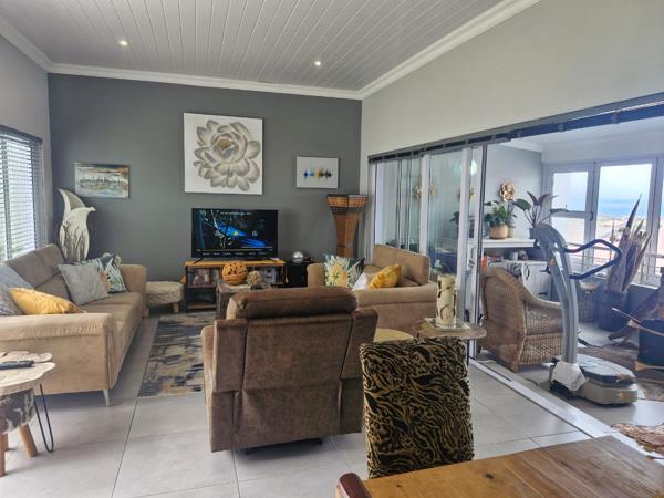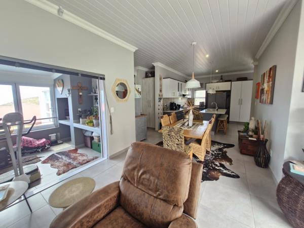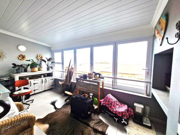 This well-designed duet home features several reception- and braai rooms, 3 extremely spacious bedrooms and 2 full bathrooms. Rooms are sunny and offer scenic views, including some distant sea view. The downstairs living room opens to a wind-protected section of the garden, ideal for relaxing outside in comfort and privacy.