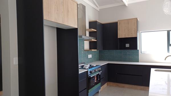 This duet home has a well designed layout boasting amazing space and abundant light. The automated double garage is on the lower level with the rest of the home on the upper level. There is an open plan living area, dining area and inter-leading stylish kitchen with scullery and pantry to enjoy. Large windows let in ample light as well as panoramic sea views. The living area with built in braai has open rafters which creates a feeling of space. Modern finishes abound.