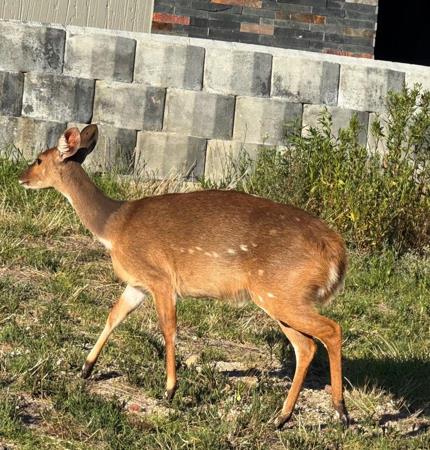 Estate offers tranquility and free roaming bushbuck, springbuck and tortoises. Guinea fowl and franklins. Two dams and picnic spots in estate.