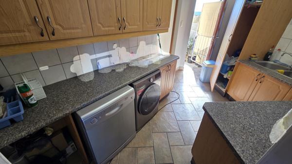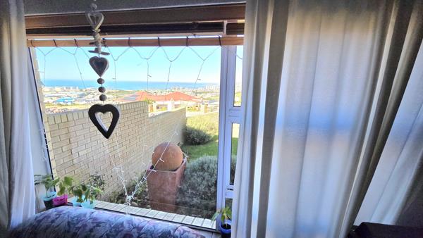The main bedroom boasts ample built-in cupboards, an en-suite bathroom with a bath, and balcony with breathtaking sea views. Two additional spacious bedrooms and a second bathroom with a shower provide plenty of space for family or guests.
