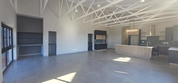 The spacious open plan kitchen is modern, a chef''s dream with a center island, lots of beautiful two tone cupboards and drawers, Ceasar Stone counter tops, 5 plate gas stove, under counter Bosch oven and niche for a double fridge. A separate laundryscullery is at the back with its own door, more cupboards, double zink and space for 3 appliances under counter.
