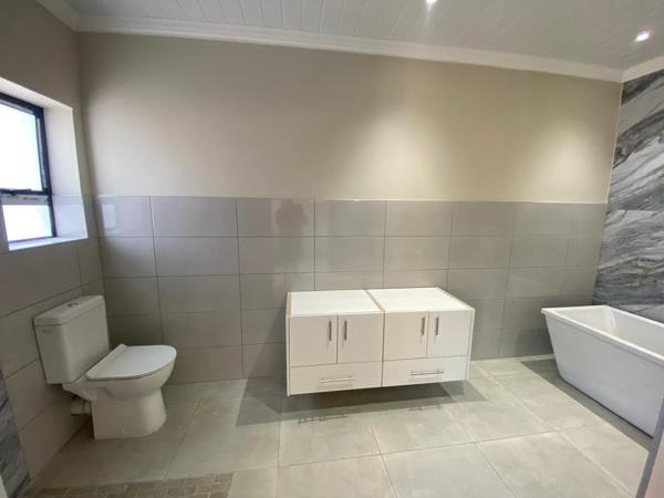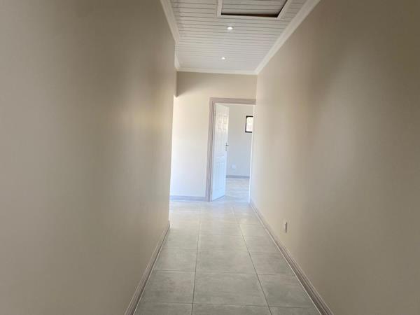 This gorgeous single-level home, set to be completed by December 2025, features three bedrooms, two bathrooms, and a spacious double garage. With a modern and high-quality finishes, the main bedroom offers a beautiful en-suite bathroom, perfect for unwinding. The open-plan living area flows effortlessly into a sleek, functional kitchen, ideal for family life and entertaining. Stackable doors open to an outdoor braai area, adding to its appeal.