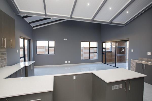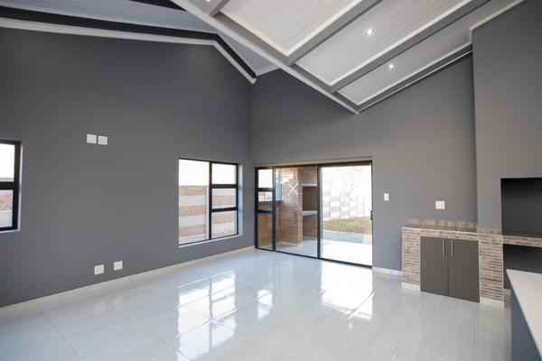 The heart of the home is its open-plan design, seamlessly connecting the kitchen, dining, and lounge areas. A built-in indoor braai/fireplace makes this space as inviting in winter as it is in summer, while large stacking doors open to a covered outdoor braai patioperfect for entertaining year-round. The developer has also included a stylish server on wheels, a thoughtful touch to enhance your hosting experience.
