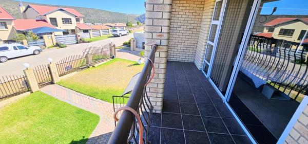Door to the enclosed back garden and outdoor braai area. View towards the Outeniquas Mountains.