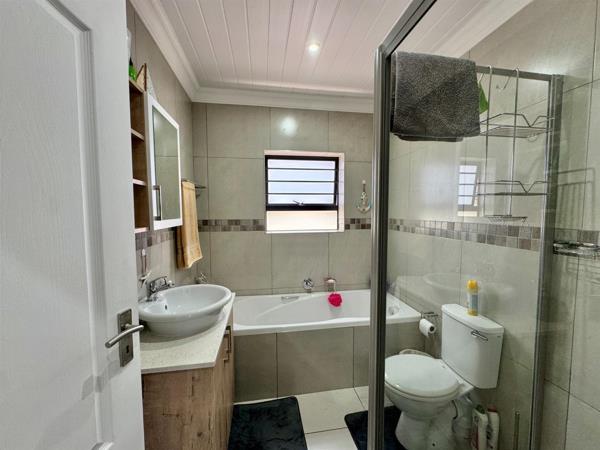 The stylish kitchen is both practical and well-organised, complete with a separate scullery that provides direct access to the double garage and a private courtyard with clotheslines. The home also includes guest parking, a neat low-maintenance garden, and a Wendy house for extra storageideal for tools or garden equipment.