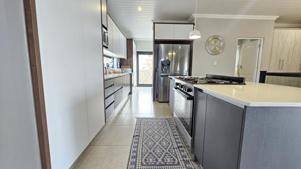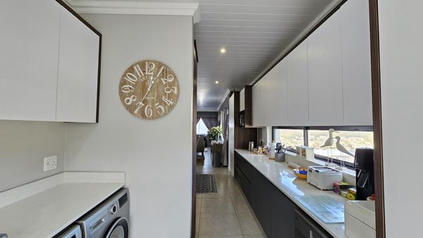 Sun-drenched open spaces and elegant two-tone kitchen cabinetry with gas stove and separate scullery, leading you straight to the showstopper: a spacious ocean-view deck complete with a built-in braai.......perfect for sunset dinners or early morning coffee.