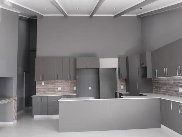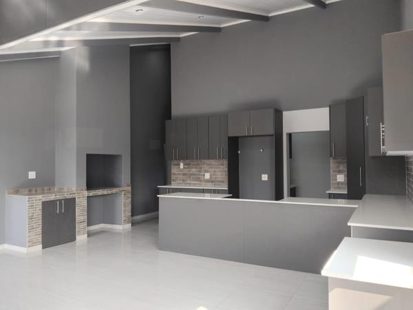 As you step inside, you are greeted by a spacious open-plan kitchen that boasts a high vaulted ceiling, creating an airy and expansive atmosphere. Designed with both functionality and style in mind, the kitchen features ample storage, a gas stove, and a generous scullery. Adjacent to this culinary haven is an indoor braai area, ideal for entertaining guests or enjoying intimate family gatherings.