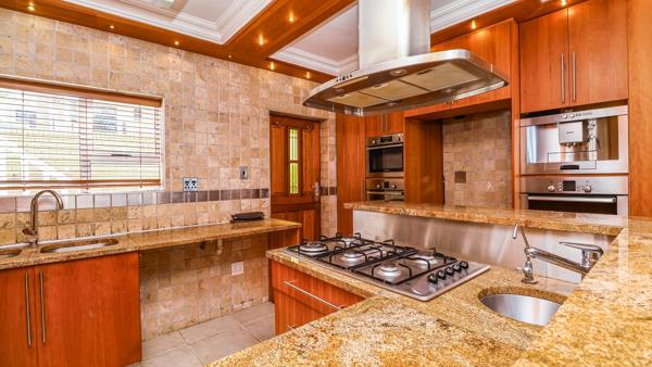 Step into a spacious open-plan living and braai area, flowing seamlessly from the elegant kitchen a true chefs delight fitted with two ovens, two dishwashers, a gas hob, and a built-in coffee machine.