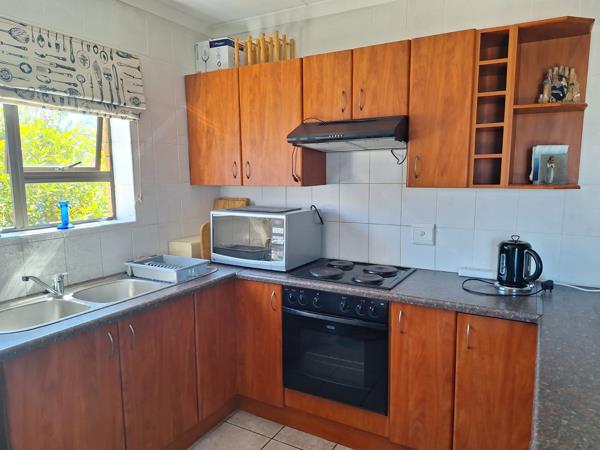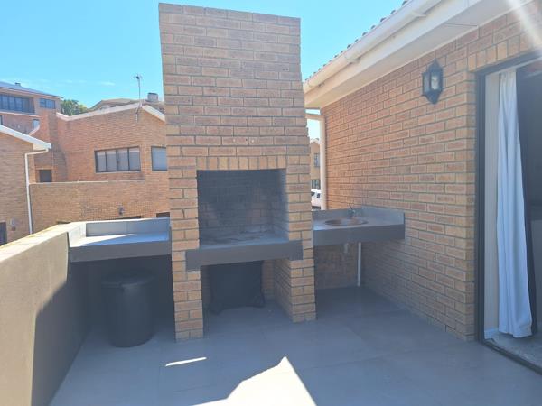 Double storey home with an open plan living area, kitchen with a large and practical breakfast counter, 3 bedrooms, 2 bathrooms and a single garage. The large upper balcony is well equipped for entertaining with a built-in braai and rinse bowl. The balcony also provides distant sea view. The house is located on a corner stand that provides a lovely stretch of lawn and garden.