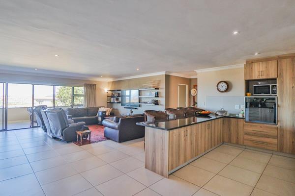 When entering this home an open plan living area greets you. The spacious lounge, dining room and kitchen open up with sliding doors onto an open patio with uninterrupted sea views. There is a built in braai in the living area.