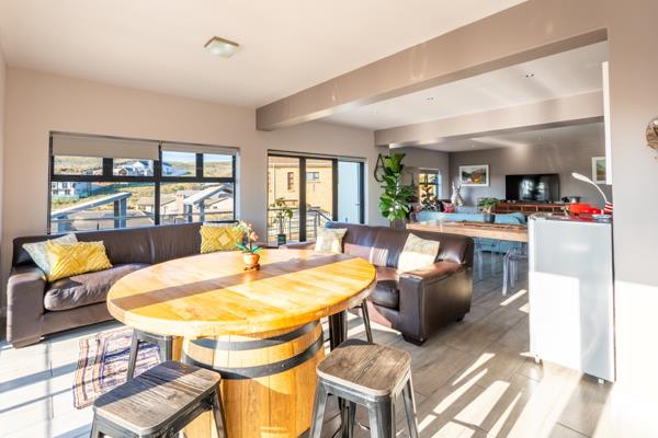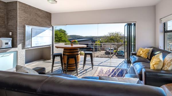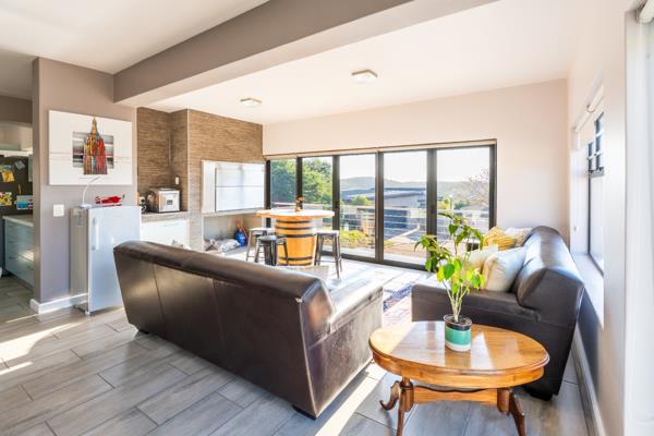Boasting five bedrooms, three bathrooms, and a home study, this 437m residence is the epitome of contemporary luxury. The open-plan Baroque-style kitchen features a concealed scullery doubling as a laundry area, seamlessly connecting to the indoor entertainment space with a built-in braai. Step onto the expansive balcony and take in the panoramic views of the Outeniqua mountain range.