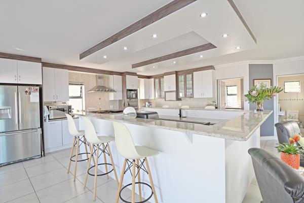 Magnificent multi-level home designed to optimise the use of light and space inside, while providing panoramic views to the outside. Spacious living- and entertainment areas flow into each other, with the ultimate dream kitchen as central pivot. A gas hob and 2 electrical ovens make cooking a breeze while the large scullery with pantry cupboard and space for a top loader takes care of the practicalities. The study is another light-filled room with enough stations for the family and plenty of fitted cupboards. Relax in one of the palatial bedrooms and enjoy the beautiful views!