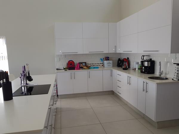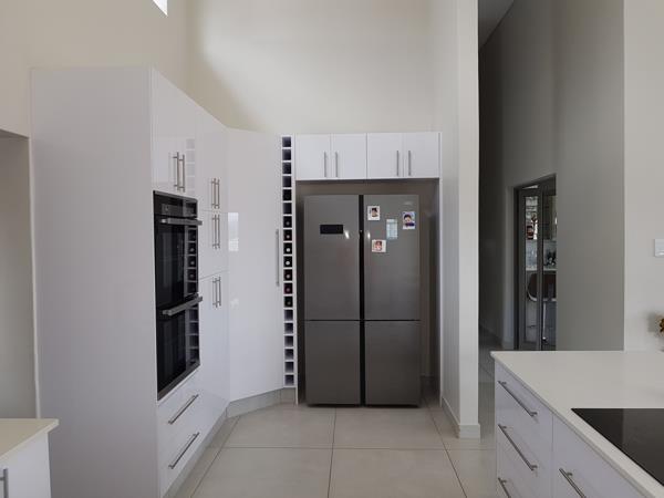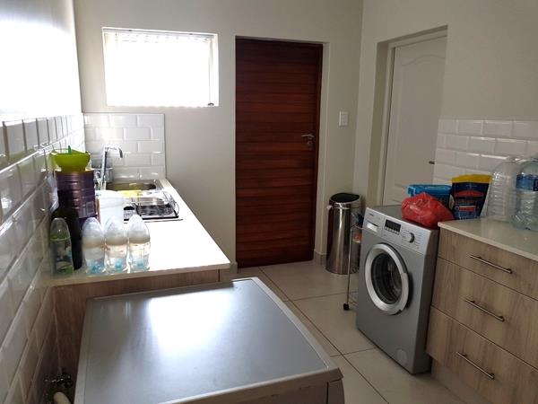The well designed kitchen with Caesar stone counter tops and high gloss cabinets and a centre island with a built in glass top stove with eye level oven and separate scullery with pantry cupboard will please all. The spacious scullery has space for three appliances and leads out into a back garden.