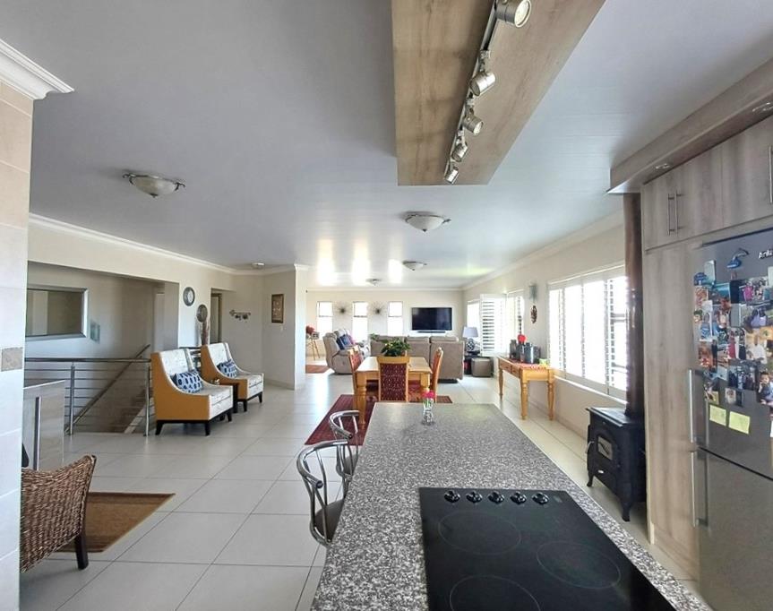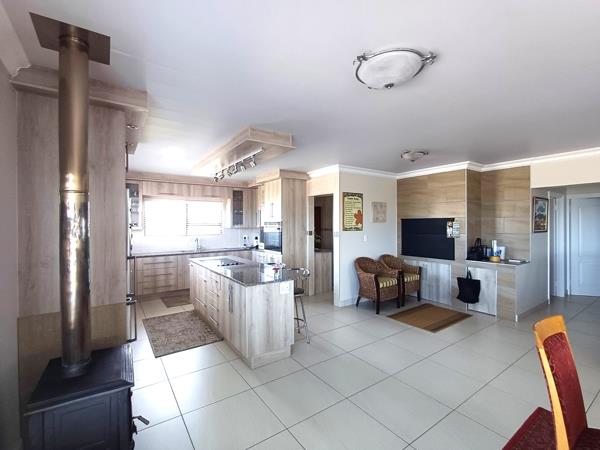 Entering the front door a picture perfect sea view greats you. The entrance hall walks into a timeless lounge and dining area as well as kitchen with adjoining scullery. The perfect floor plan with kitchen, dining room and lounge that flow into an indoor braai area is an entertainers dream. This whole area has large sliding windows and high ceilings to make the most of the spectacular sea views. The home has American shutters and blinds throughout. There are two spacious en suite bedrooms and a guest toilet on this level.
