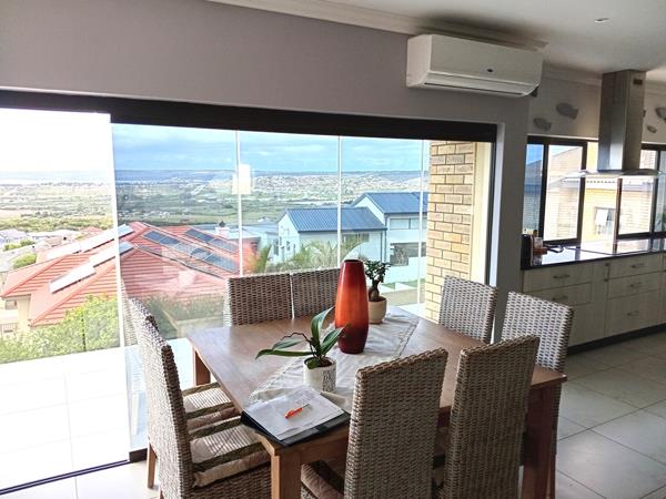 Vanaf die voordeur, die portaal en deur die leefarea/braaikamer na die moderne kombuis wat volledig toegerus is vir die Moeder van die huis..met seeuitsig!