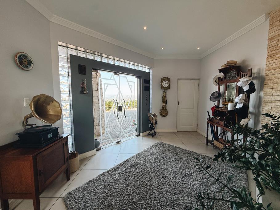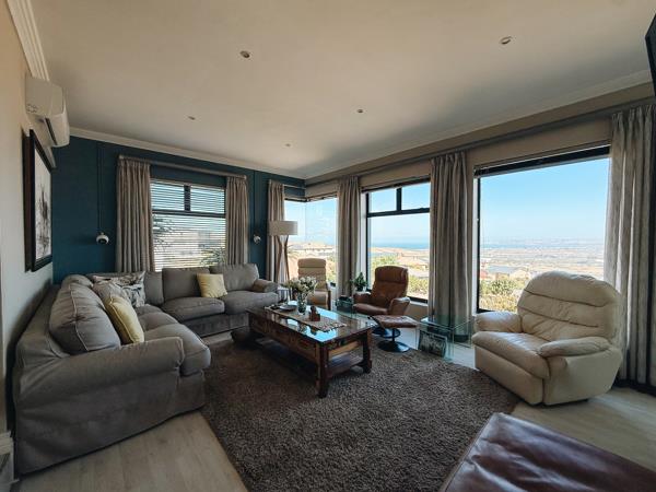 The expansive entertainment area features a stainless-steel braai and an unobstructed sea view that can be enjoyed even when the sleek frameless glass panels are closed.