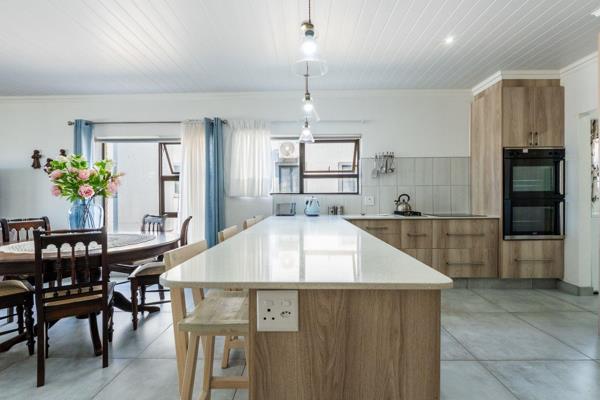A second living area leads to a fully enclosed braai room featuring a stainless-steel built-in braai ideal for year-round entertaining. From here, enjoy partial sea views, also visible from the master bedroom, adding a touch of coastal serenity to everyday life.