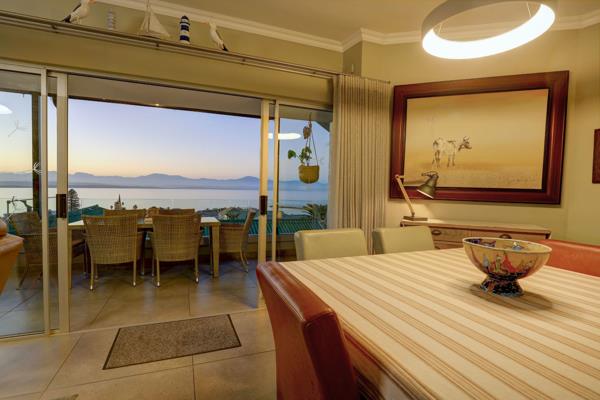 Immaculate home with exquisite ocean and harbor views.. Joint Mandate - This beautifully renovated double-story home in sought-after Mossel Bay Central optimizes the magnificent views of the ocean and Outeniqua Mountains. The home is modern and chic, with sunny north-facing rays brightening and warming the home throughout.