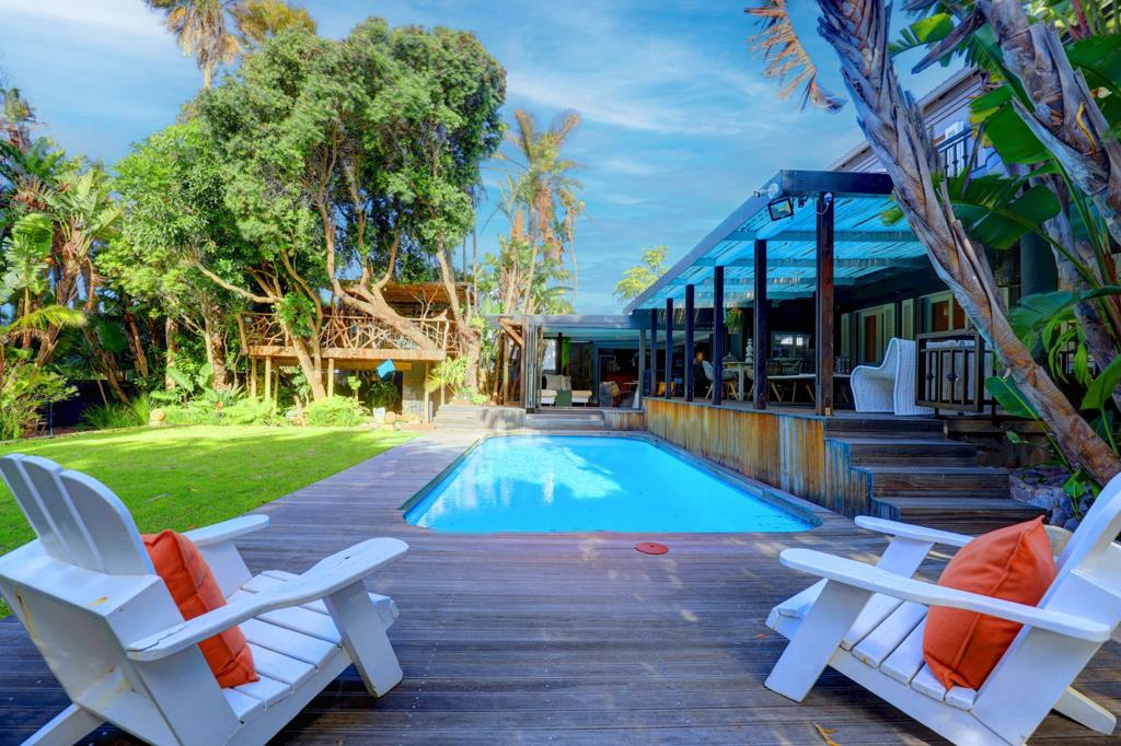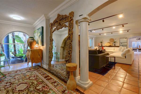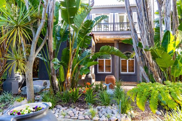 Luxurious Oasis. Set in a serene garden landscape, this elegant residence offers a harmonious blend of space, light, and privacy. French shutters throughout add a touch of European elegance.