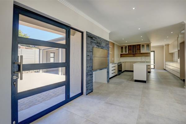 This newly built home in Mossel Bay Central offers a light, north-facing orientation designed for comfortable everyday living. The open-plan living area flows seamlessly through stacking doors, creating a natural connection between interior and exterior spaces.