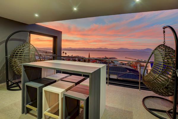 Luxurious Multi-Level Home with Captivating Ocean, Mountain & Town Views. Positioned in the heart of Mossel Bay Central, this extraordinary residence rises above the town, offering an unbeatable blend of location, space, and breathtaking scenery. With uninterrupted views stretching over the town, harbour, Santos Beach, and far beyond to the Outeniqua Mountains, every level of this north-facing home is flooded with natural warmth and sunlight. Enjoy the convenience of being just a short stroll from charming cafés, the historic lighthouse, and the famous Point areaa hub of scenic walks, tidal pools, and coastal beauty.