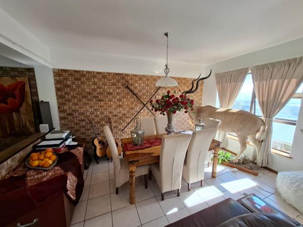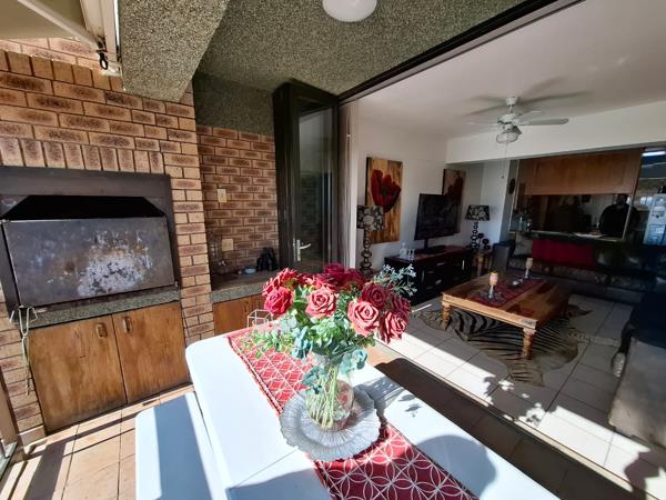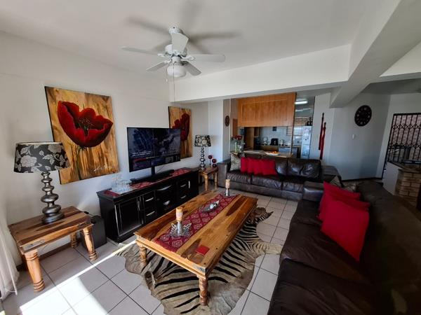 This apartment offers 3 bedrooms, 2 bathrooms, 2 garages, kitchen with scullery, guest toilet and underroof balcony with braai. As well as a lounge and diningroom area.