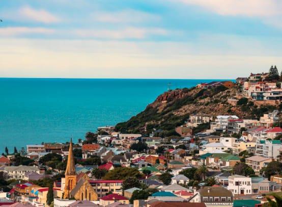 This bustling Garden Route town is a hot holiday spot and one of the ports of South Africa. It is set on the sun-washed slopes of Cape St Blaize, overlooking the expansive bay, and against the blue-black backdrop of the Outeniqua Mountains.