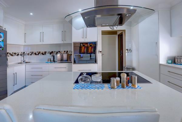 Single Level Living. This single-level home offers three bedrooms, two bathrooms, and expansive indoor and outdoor entertainment areas. A modern kitchen, designed with both style and function in mind, forms a key part of the living space.