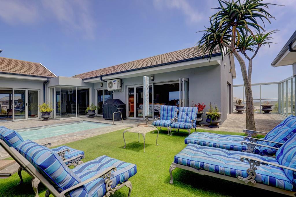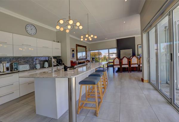 Sliding and stacking doors wrap the layout, allowing natural light to enhance the interior. The indoor braai area connects seamlessly to the dining room, lounge, and an entertainment room with a built-in bar, while each area features generous windows that frame the surroundings.