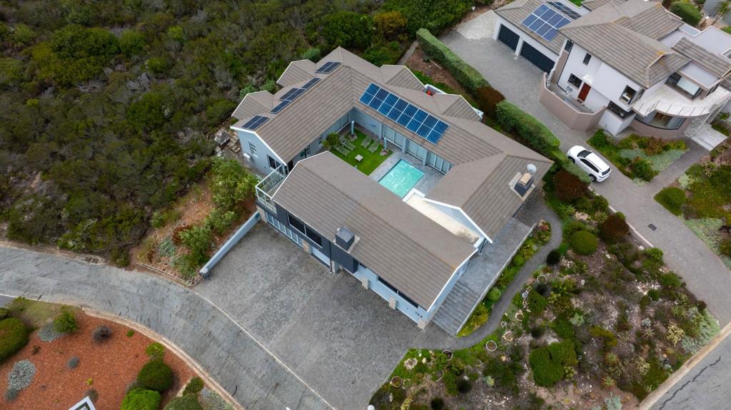 The residence offers four bedrooms, each with direct outdoor access, and two include en-suite bathrooms. The main bedroom and lounge feature air-conditioning, and the property is supported by a full solar system.