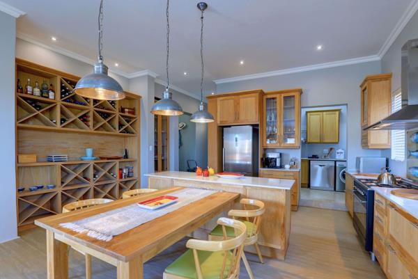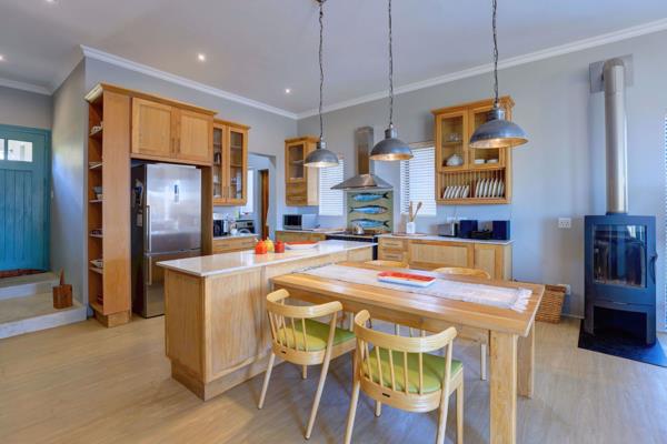 The kitchen enjoys a Smeg gas stove and a fabulous Invecta combustion heater ensures cosy winters in the open plan living dining area and the built-in braai celebrates summertime living.