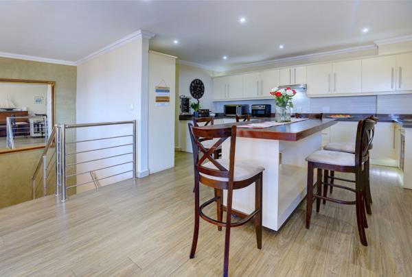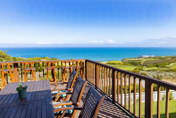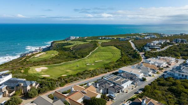 Introducing a front-row Fynbos home with uninterrupted views of the golf course and ocean, providing an exceptional living experience from the deck, main bedroom, and lower level. This property offers an open-plan living area, complete with an indoor braai, modern kitchen, and scullery, designed for seamless flow and functionality.
