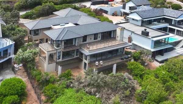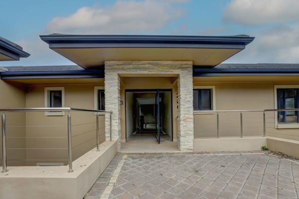 The open-plan living area flows seamlessly to an indoor braai space, leading through large sliding doors to a balcony where the scenery can be fully appreciated. A separate lounge and a central sun-filled courtyard create a bright and welcoming atmosphere throughout. The kitchen includes a separate scullery with direct access into the garage, ensuring everyday convenience.