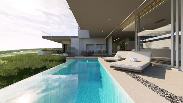 Architectural Elegance with Ocean Views. This soon-to-be-built masterpiece in Pinnacle Point combines modern architecture with the finest in coastal living. Thoughtfully designed as a double-story home, it features four spacious bedrooms - all en-suite as well as a guest bathroom. Large sliding doors throughout the home enhance its open-concept design, seamlessly connecting indoor and outdoor spaces.