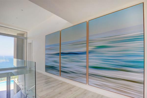 On the lower level, a cellar and bar area add a unique touch, complemented by a comfortable pajama lounge for informal relaxation. Each bedroom features large sliding doors that open to the fresh coastal air, enhancing the homes sense of openness and light. Sold fully furnished, this property captures the essence of bright, elegant coastal living in one of Pinnacle Points most peaceful settings. The price is excluding VAT