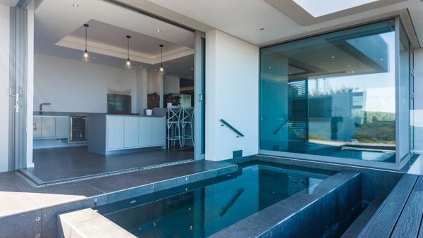 Enjoy a magnificent 180-degree view of the Indian Ocean all year round, with whale watching available between July and December. The home is located at the 6th hole in Pinnacle Point Estate, a premier golf estate and 400-hectare nature reserve. This estate is home to a variety of indigenous wildlife and fynbos.