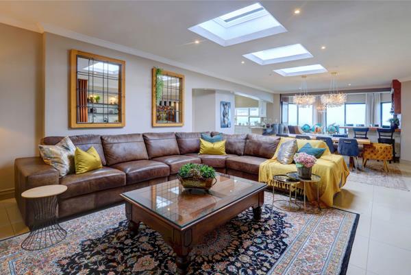 Enjoy stunning views of the Indian Ocean, Clubhouse, and Golf Course from large windows on both the lower and upper levels. The open-plan living area seamlessly connects the kitchen, indoor braai area, and bar, making it ideal for entertaining friends and family.