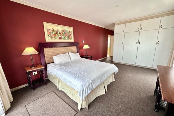 The ground-floor en-suite bedroom provides direct access to the garden, while the main suite upstairs boasts a generous private with breathtaking vistas, ample cupboard space, and a luxurious en-suite bathroom. The third bedroom opens to the balcony and includes its own full bathroom.