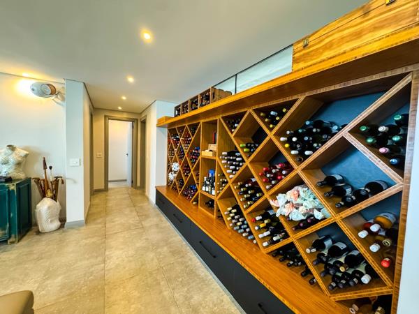 Multiple informal lounges open through stacking doors onto expansive terraces, where a heated pool and integrated jacuzzi command breathtaking ocean vistas. An indoor braai room with stainless steel fittings, a chic built-in bar, and a hanging fireplace elevate the homes entertainment potential. The lower level also includes a dedicated home cinema for an immersive experience.