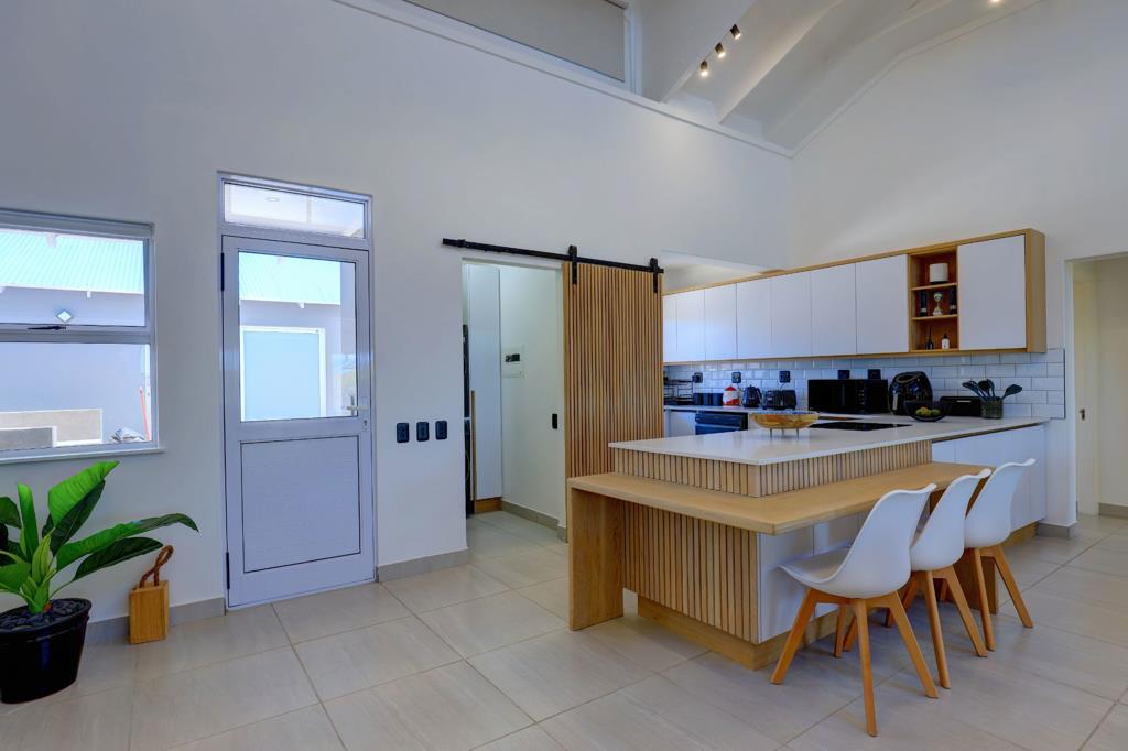 An open-plan layout features a built-in bar, indoor braai, and entertainment area, seamlessly connecting to an outdoor boma space for gatherings under the stars.