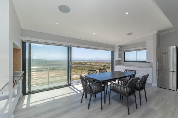 Spacious braai room with sliding doors opening to stunning sea and mountain views
