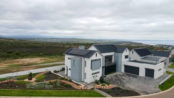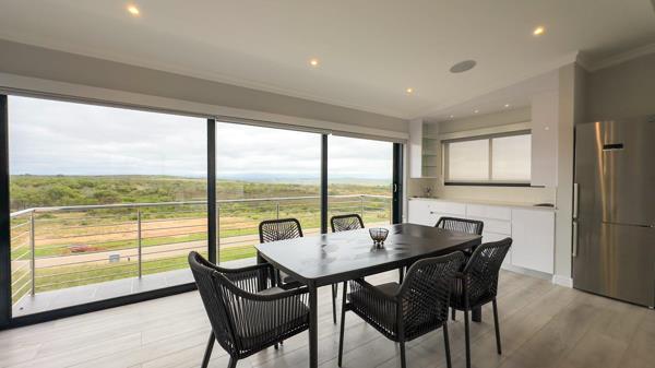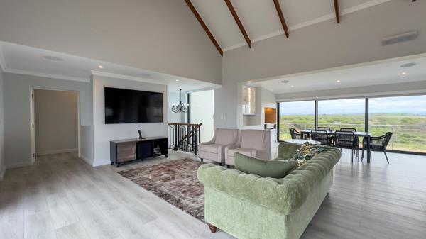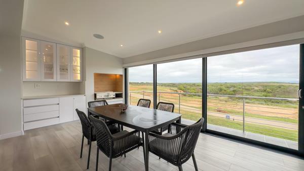 This stunning, brand-new residence boasts breathtaking views of the majestic Outeniqua Mountains and the sparkling ocean, embodying the pinnacle of luxurious coastal living.