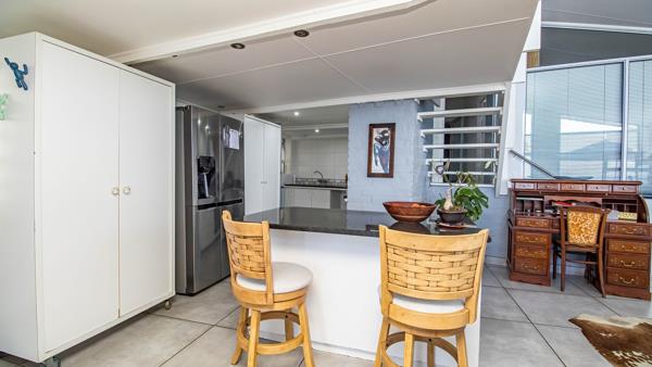 Sunrises can be enjoyed from the other home from the balcony with a built-in braai, where you can entertain or relax while taking in the majestic views. From the balcony the entrance opens into a spacious tiled living area that flows into a separate kitchen that includes a built-in pantry cupboard, an electric oven and gas hob.
